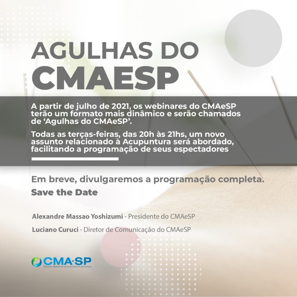 Data: 21 de junho de 2021 Horário: 20 horas (online) Público alvo: médicos acupunturistas … [Ler mais ...]