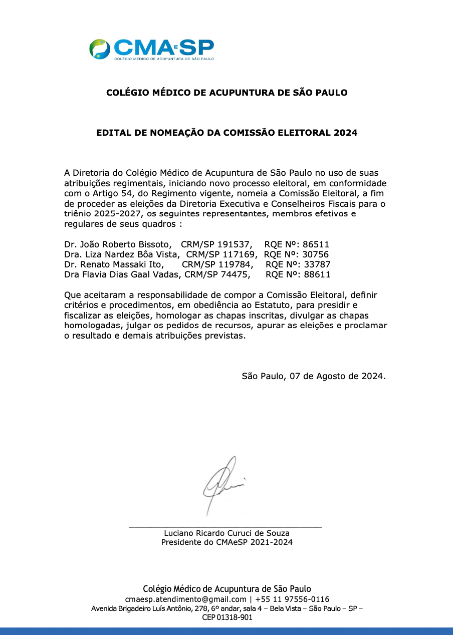 Edital de Nomeação da Comissão Eleitoral 2024