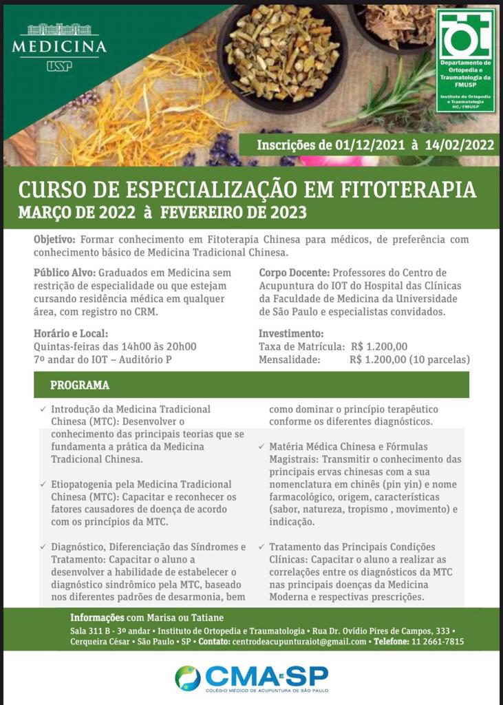 Objetivo: Formar conhecimento em Fitoterapia Chinesa para médicos, de preferência com conhecimento básico de Medicina Tradicional Chinesa.