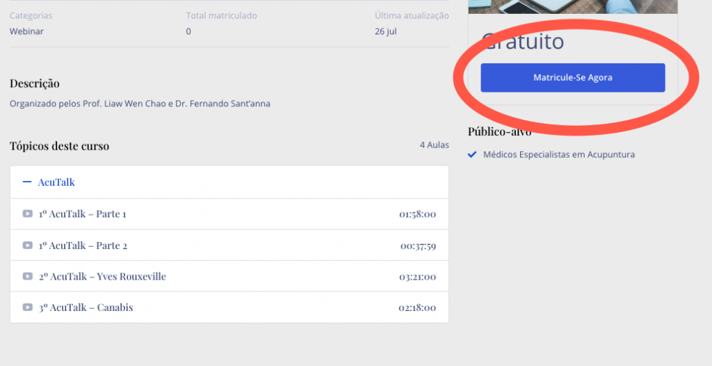 2 – Clique em MATRICULE-SE AGORA. O acesso é gratuito para os associados do CMAeSP